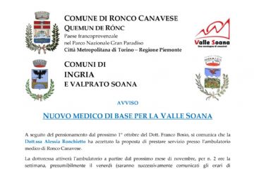 NUOVO MEDICO DI BASE PER LA VALLE SOANA